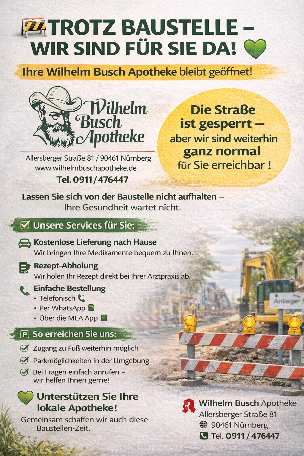 Willkommen bei der Wilhelm-Busch-Apotheke in Nürnberg! Unser engagiertes Team steht Ihnen mit professionellem Rat und umfassenden Serviceleistungen zur Seite.